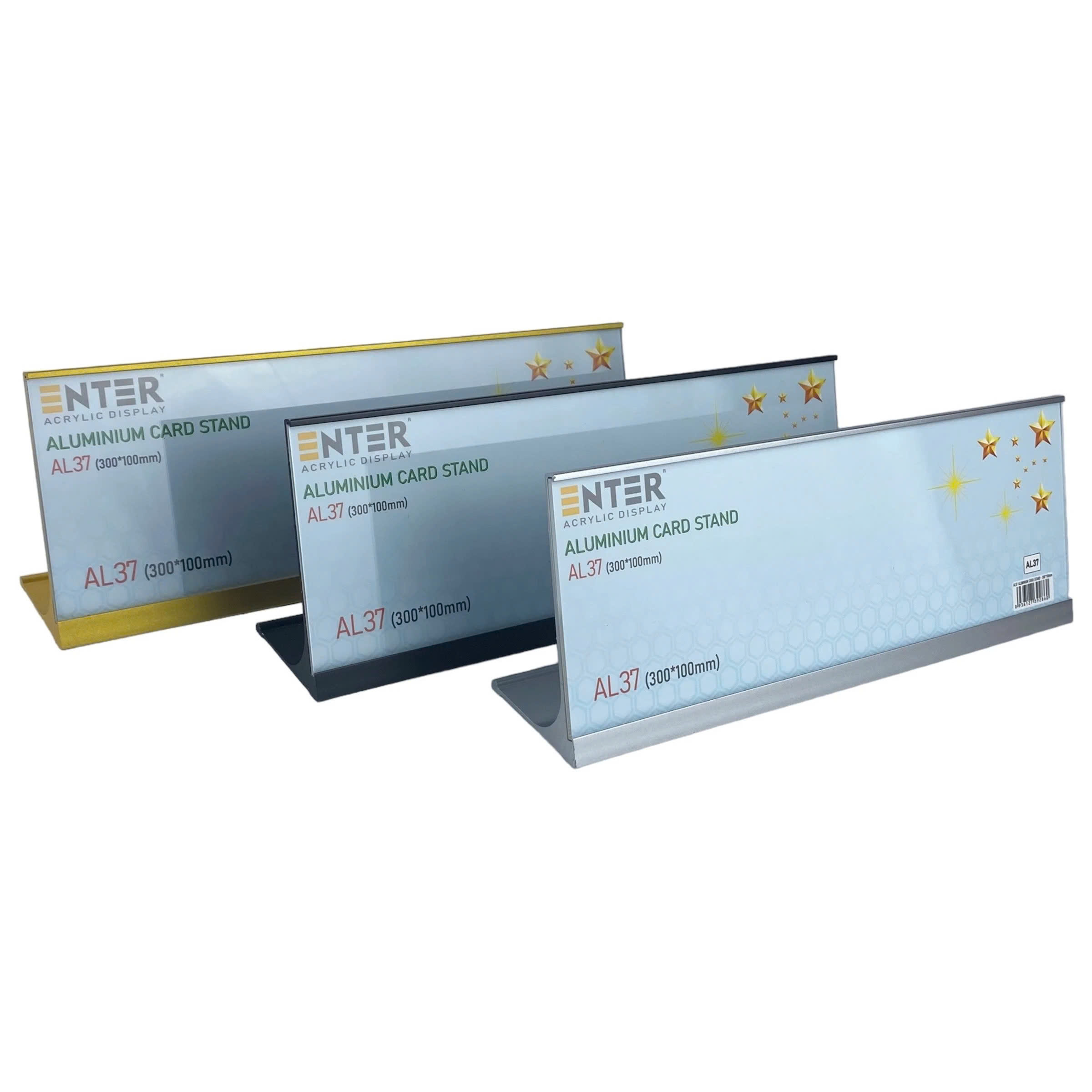 Bảng thông tin để bàn nhôm Enter là sản phẩm làm từ nhôm cao cấp có công dụng hiển thị tên, chức vụ của cá nhân, tập thể làm việc tại các cơ quan, doanh nghiệp, đơn vị hành chính... được sử dụng tại các hội nghị, cuộc họp, tiếp tân...