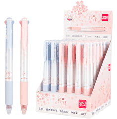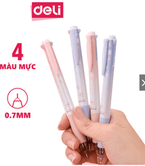 Bút bi nhiều màu Deli - 0.7mm 4 màu mực Thiết kế họa tiết hoa anh đào đẹp mắt Bút bi dầu cho cảm giác trơn tru khi viết Đệm cao su êm ái, chống trơn trượt khi viết Có tích hợp phần cài ở đuôi bút