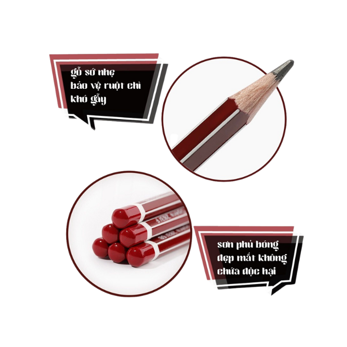 Gỗ nhẹ chống sốc, bảo vệ ruột chì khó gãy khi rơi.