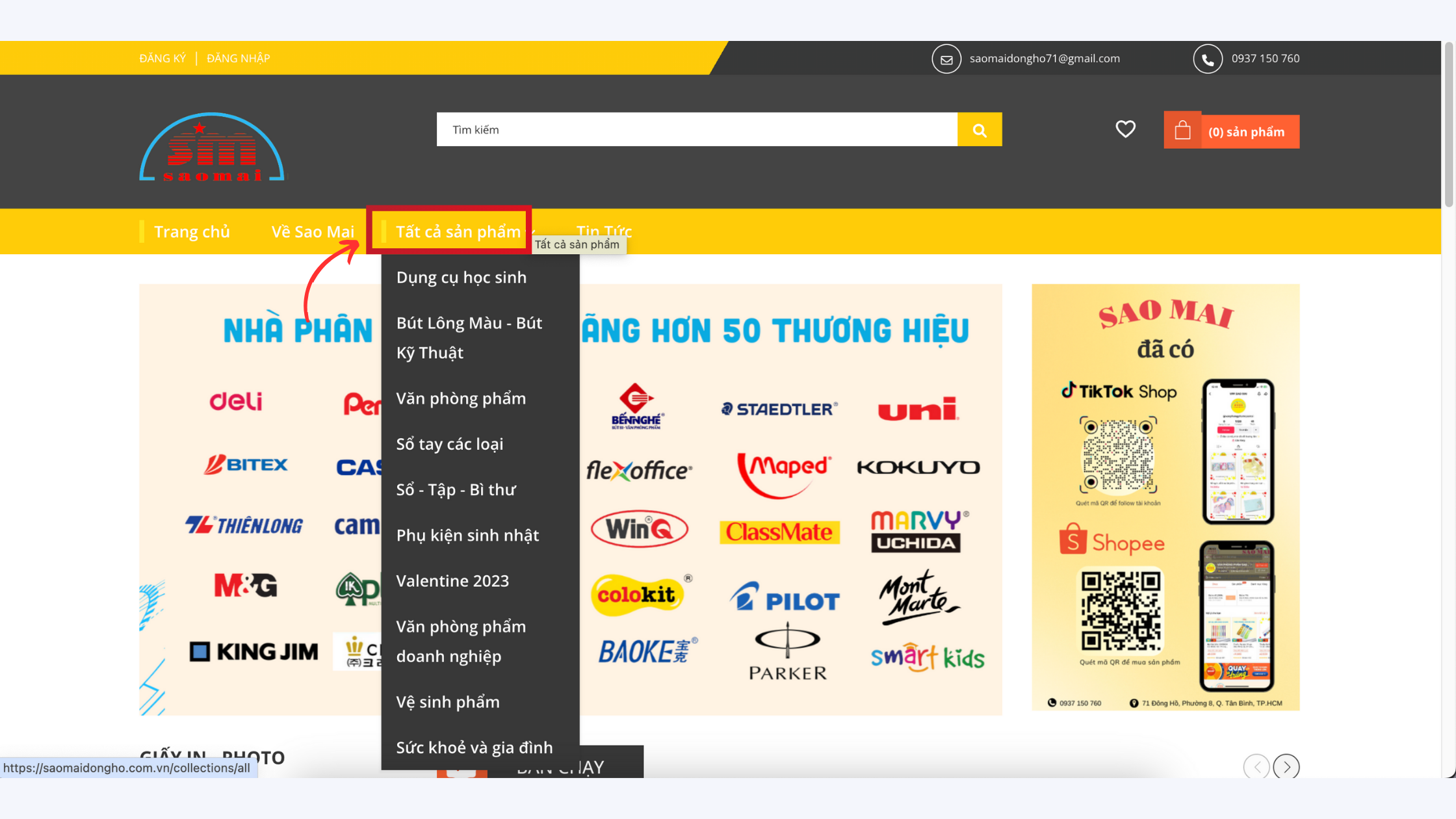 - Hoặc chọn vào mục " Tất cả sản phẩm" rồi chọn Danh mục có sản phẩm mà bạn cần tìm kiếm.