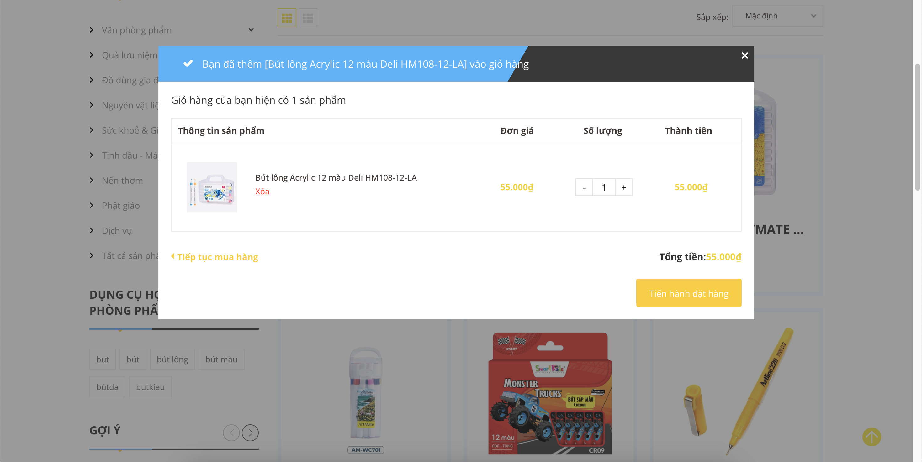 * Lưu ý: Lập lại quá trình Thêm vào giỏ hàng nhiều lần đến khi bạn đã chọn đủ số lượng các sản phẩm cần mua vào giỏ hàng.