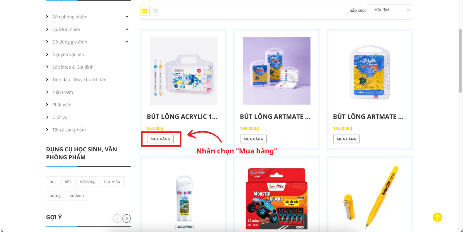 - Nếu bạn ở trang danh mục sản phẩm, bạn có thể ấn "Mua hàng".