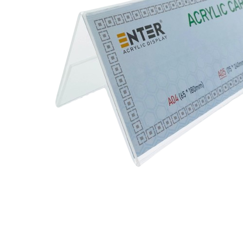 Kệ mica chức vụ 2 mặt Enter để bàn được làm từ mica cao cấp Đài Loan, có độ trong suốt cao, bền đẹp theo thời gian. Sản phẩm được thiết kế nhằm hiển thị rõ ràng tên và chức vụ của cá nhân hoặc đại diện tập thể, giúp nâng cao tính chuyên nghiệp trong môi trường làm việc. Kệ thường được sử dụng phổ biến tại văn phòng doanh nghiệp, cơ quan hành chính cũng như trong các sự kiện như hội nghị, cuộc họp, khu vực tiếp tân, lễ ký kết...