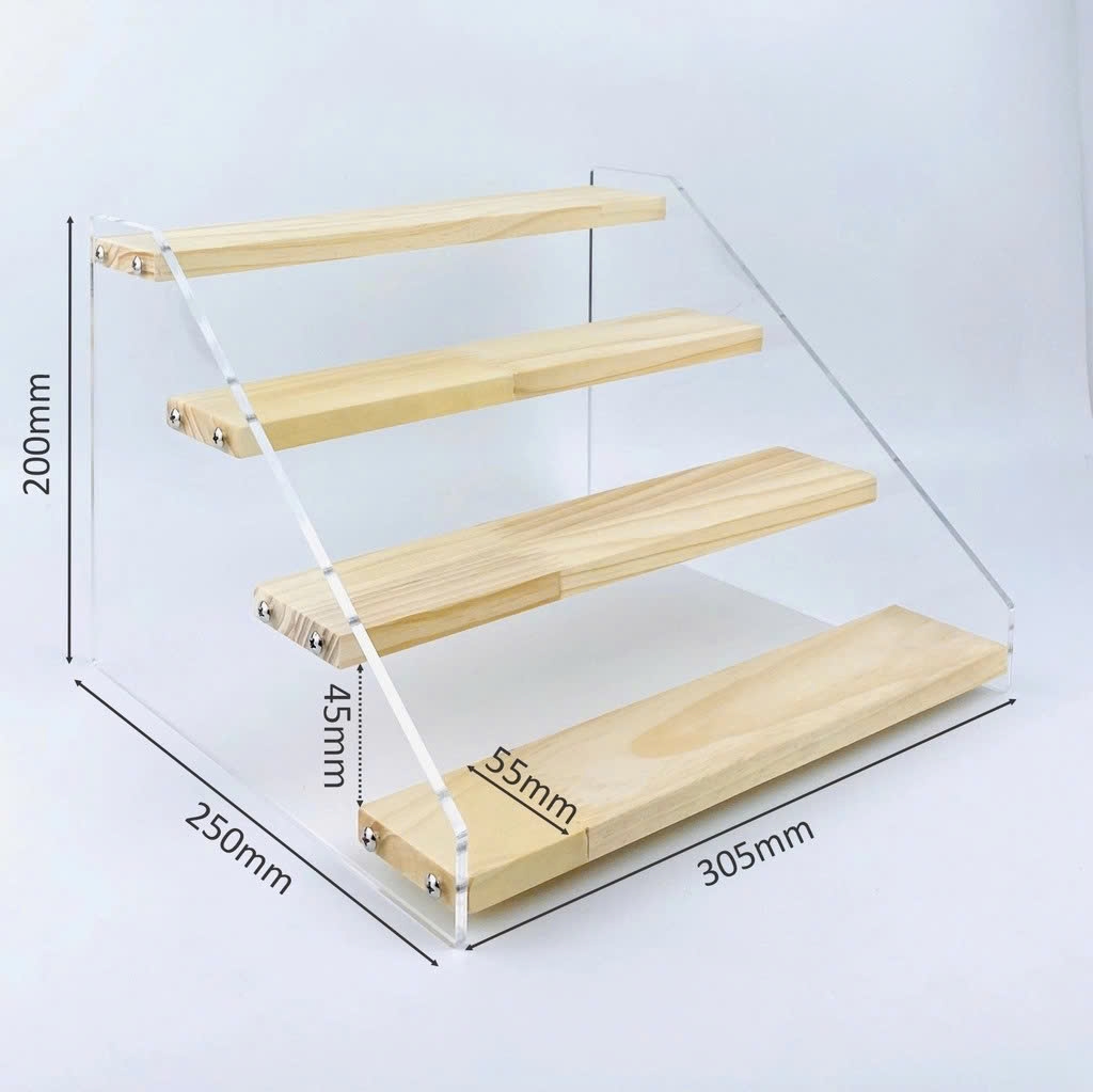 Kệ trưng bày Enter 4 tầng có thiết kế đơn giản, tuy nhiên lại tiện lợi khi sử dụng, mang lại tính thẩm mỹ và tác dụng quảng cáo, marketing cao... Kệ được làm từ gỗ tự nhiên, bền đẹp kết hợp với mica trong suốt chất lượng cao không bị đục, mờ, rạn nứt, dễ dàng nhìn rõ sản phẩm từ 2 bên.