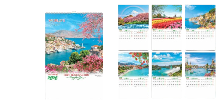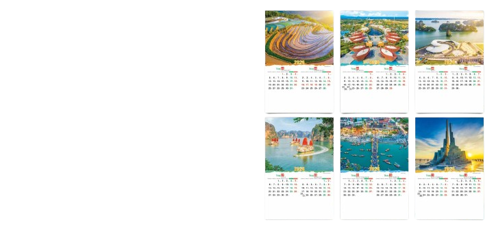 Mỗi tháng một thiết kế riêng: cảnh quan Việt Nam, phong cảnh quốc tế, hoa lá, động vật và nhiều chủ đề nghệ thuật khác.