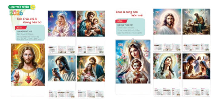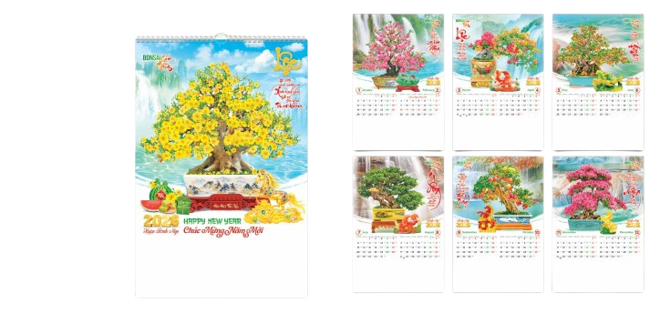Kiểu dáng: Lịch lò xo 7 tờ treo tường, tiện lợi, sang trọng.
