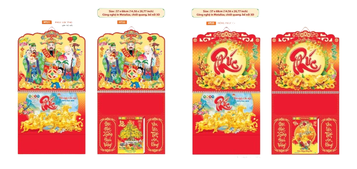 Lịch Tết 2026 - Lịch Gắn Bộ Số Khổ Bloc 37x68cm mang đậm nét truyền thống với hình ảnh Phúc, Lộc, Thọ, tài lộc và may mắn. Thiết kế lịch tinh tế, nổi bật với màu sắc tươi sáng, hoa văn rực rỡ, là lựa chọn lý tưởng để trang trí nhà cửa, văn phòng dịp Tết Nguyên Đán.