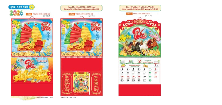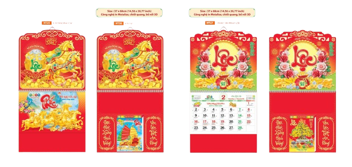 - Kích thước lớn 37x68 cm giúp lịch trở thành điểm nhấn trong không gian.