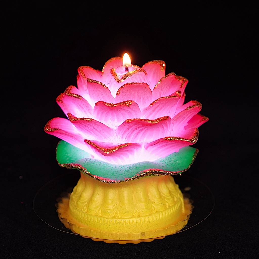 Nến Sen Đài Màu Hồng Viền Kim Tuyến
