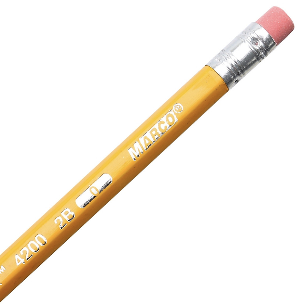 Bút Chì 2B Thân Vàng Có Tẩy Marco 4200E2B-12CB là dụng cụ không thể thiếu của các bạn học sinh hay những bạn đang theo học vẽ. Ngòi bút chuẩn 2B thích hợp để viết, vẽ, phác họa tranh, Bút cho chất chì mịn, sắc nét, khi sử dụng rất ít đổ bột chì, không lem nhoè và rất dễ tẩy sạch. Thân bút được thiết kế nhỏ gọn, cho bạn dễ dàng cầm nắm và điều chỉnh nét vẽ, đồng thời giúp người dùng dễ dàng bảo quản hoặc mang theo bên mình.