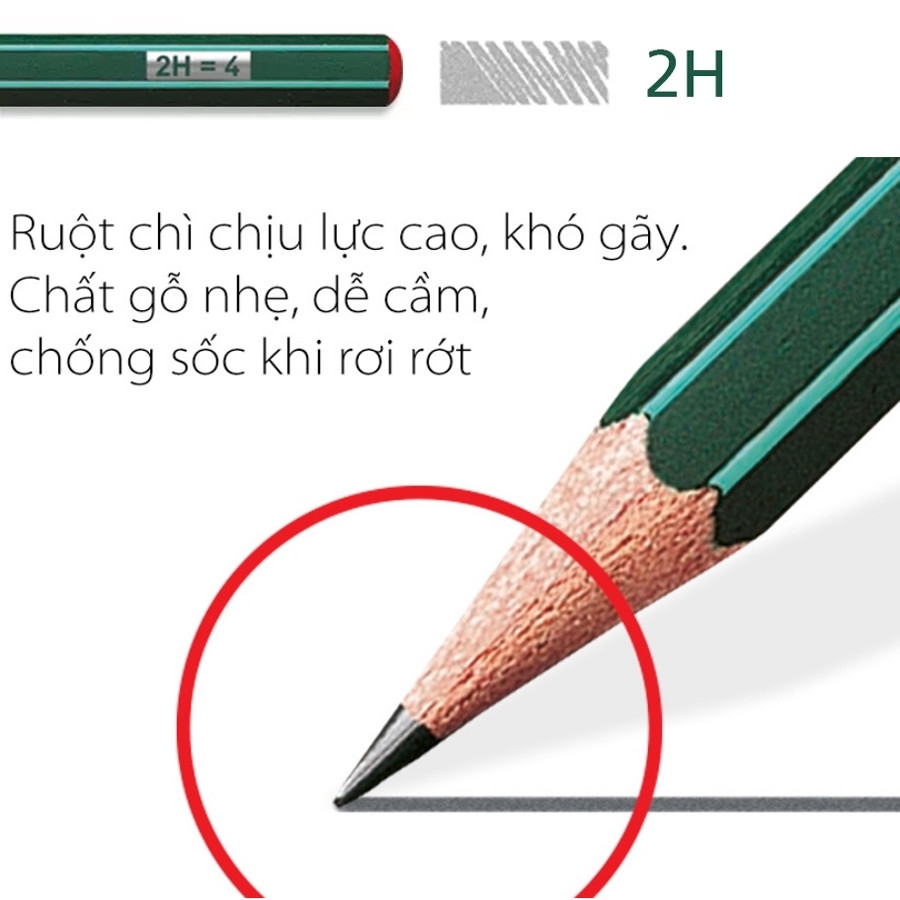 - Chất liệu: Gỗ nhẹ chống sốc, bảo vệ ruột chì khó gãy khi rơi.